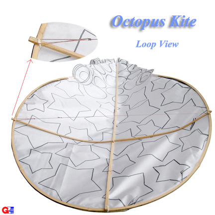 **Important: Before flying the kite, please attach the string loop on the back to make a curve for better flying (See picture below, or click here for large view)