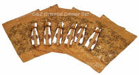 -Each set includes:1 table cloth (brocade fabric, back nylon) 16 1/2"L x 11 3/4"W; 1 napkin 16 1/2" square; 1 pair quality hardwood chopsticks; 1 chopstick-pocket; 1 Chinese artistic knot holding the chopsticks and napkin
